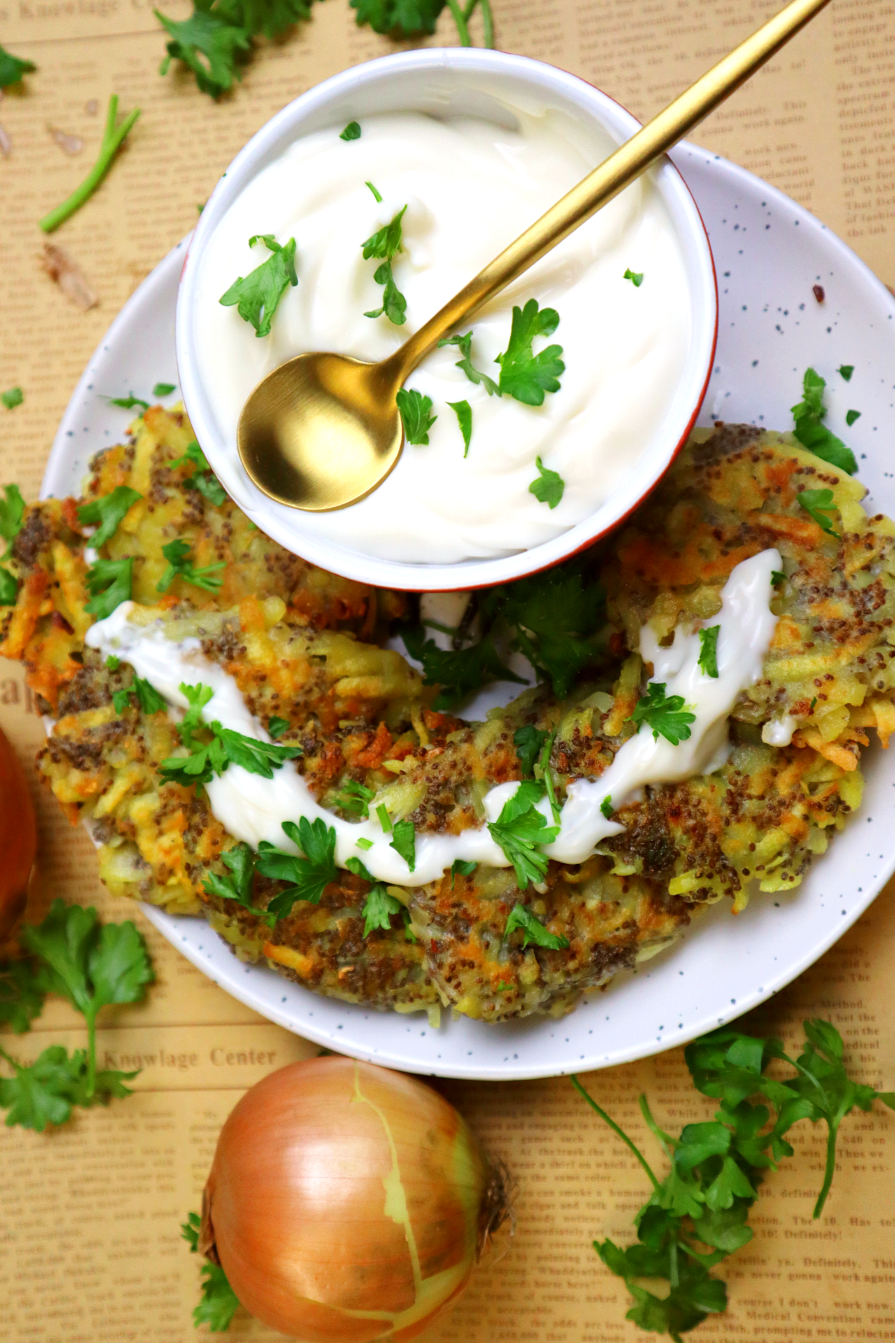 - Once they are all done, turn off the stove and serve them with vegan sour cream/yogurt or applesauce, which is what they are traditionally served with.