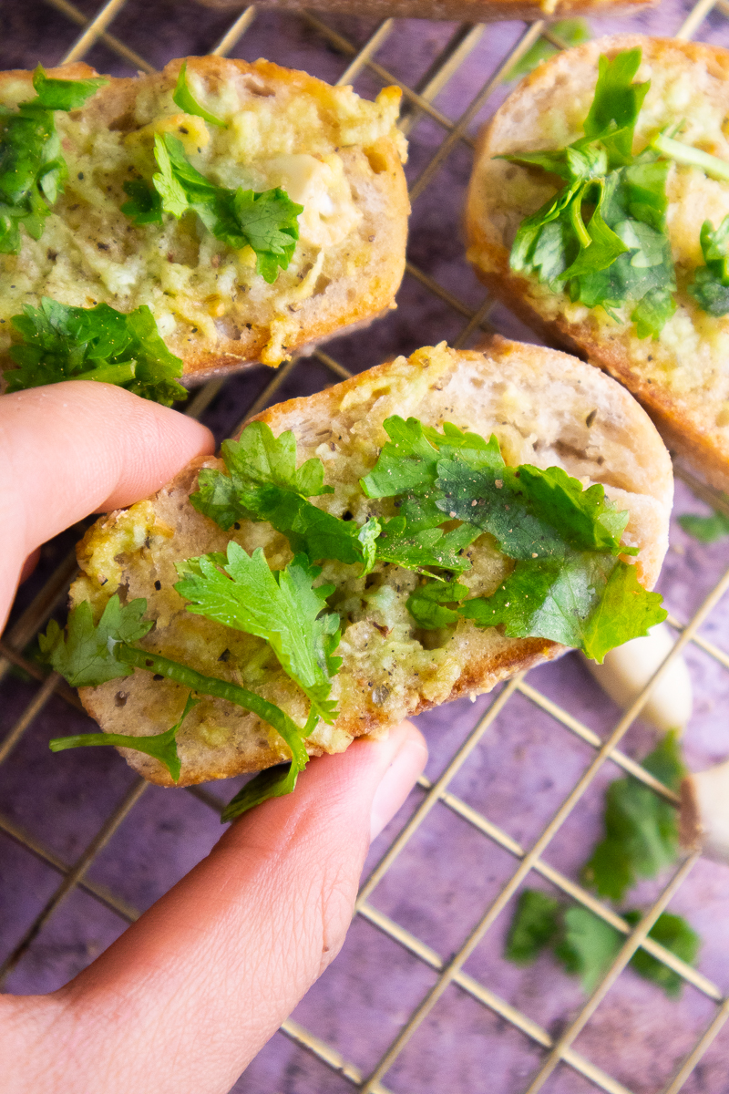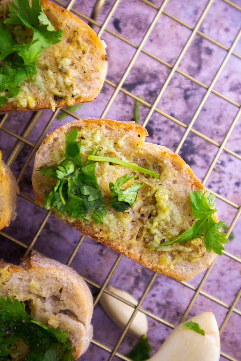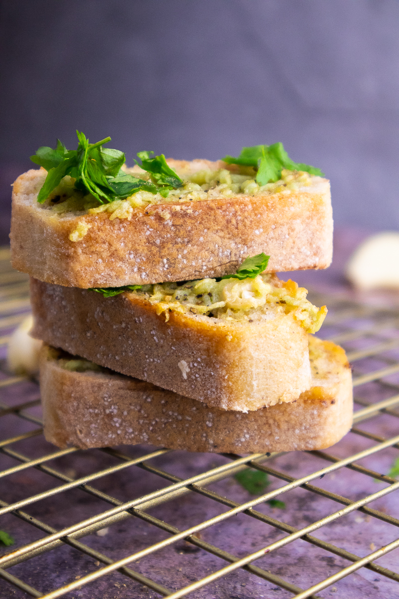 - For cheesy garlic bread, add some vegan Parmesan or nutritional yeast on top with the garlic butter.